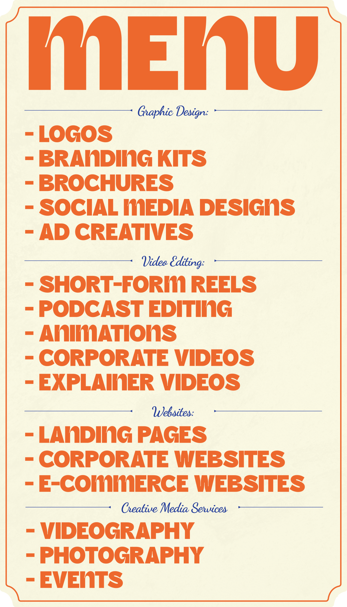 Logos, Branding Kits, Landing Pages, Short-form Videos, Podcast Edits